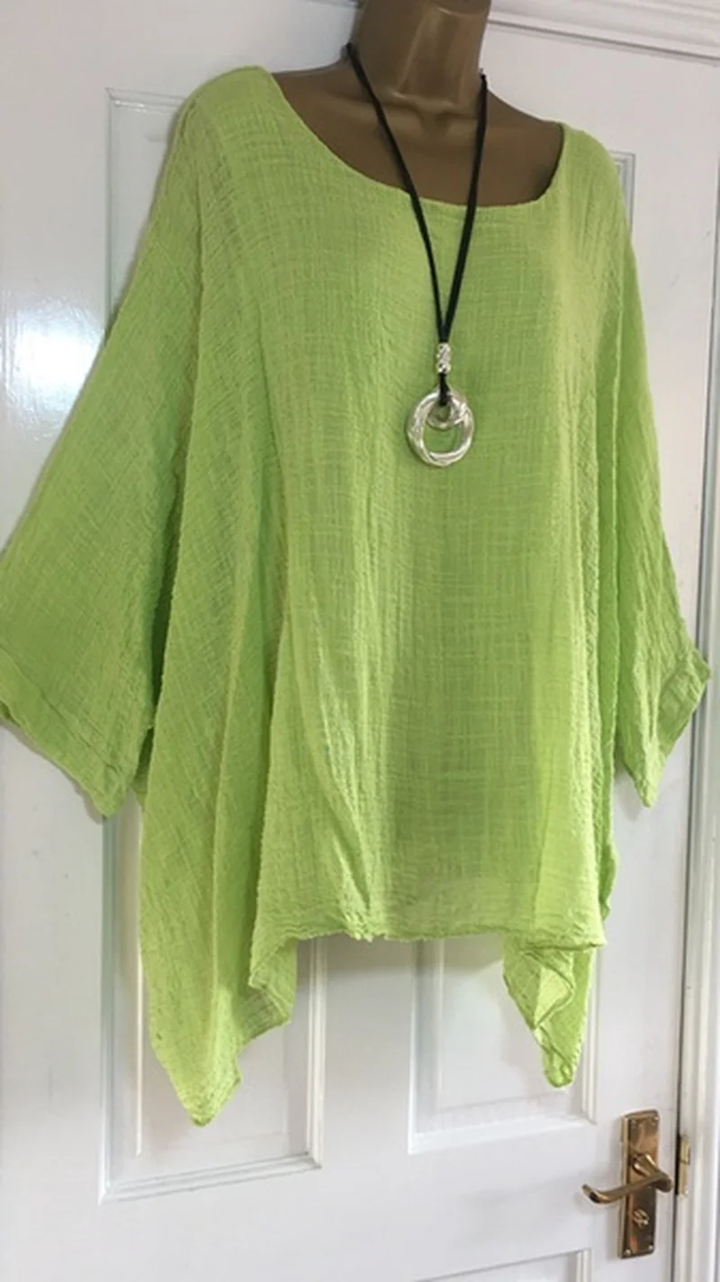 Summer Women Clothing Autumn Fashion Batwing Sleeve Solid Color Loose O-Neck 3/4 Sleeve Casual Elegance Blouse Top for Female